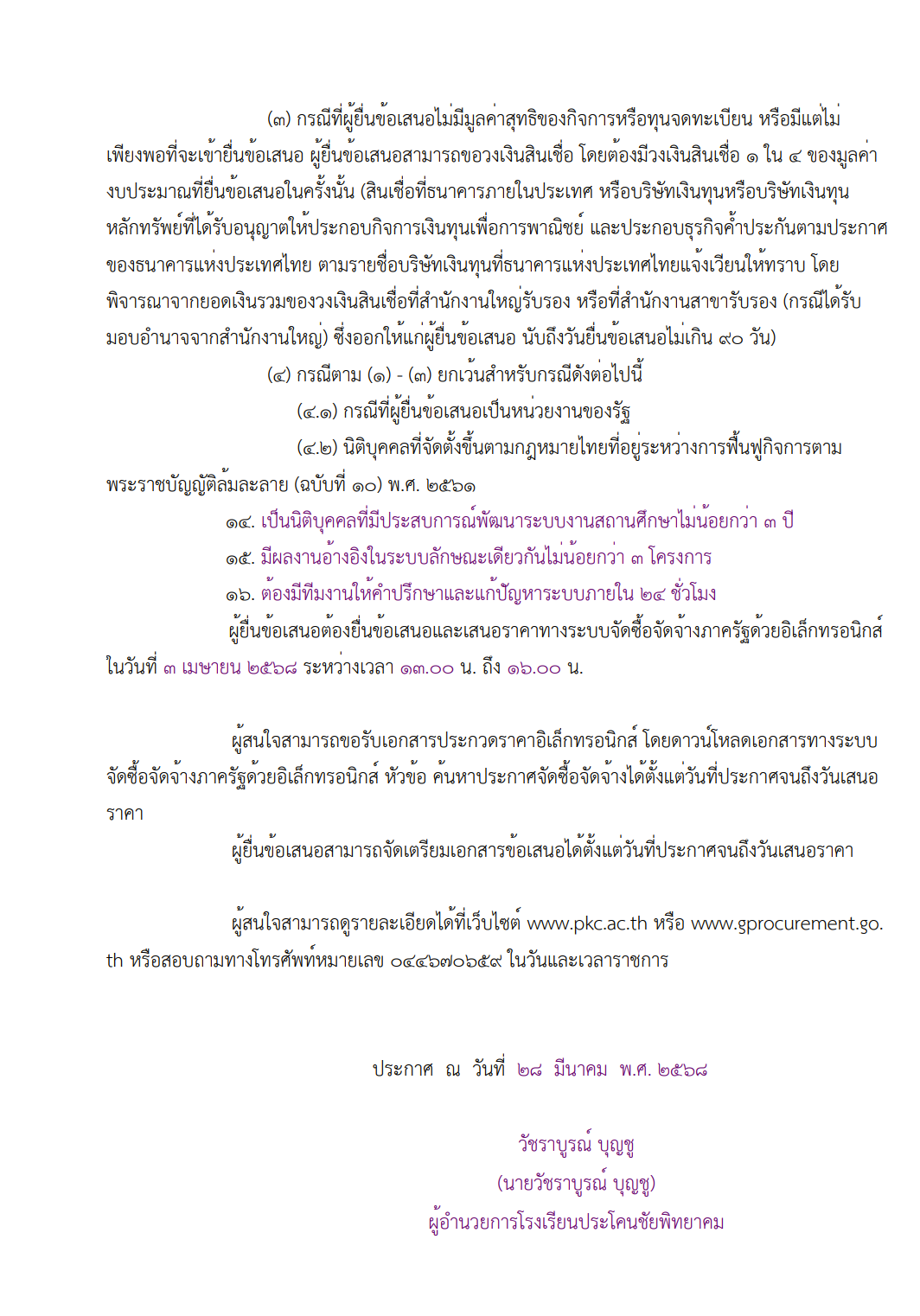 โรงเรียนประโคนชัยพิทยาคม ประกวดราคาจ้างเหมาบริการระบบดูแลช่วยเหลือนักเรียนลงเวลาออนไลน์และสื่อสารกับผู้ปกครอง